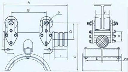 DLC-00電纜拖及中間車的結(jié)構(gòu)示意圖及型號說明